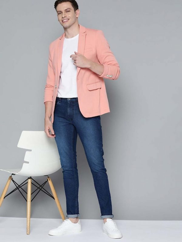 Men Pink Textured Regular Fit Smart Casual Blazer