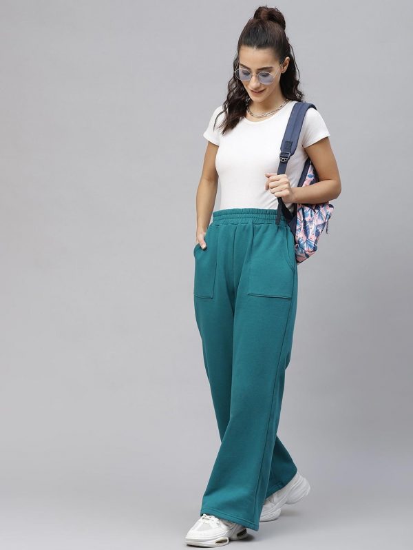 Women Teal Blue Solid Track Pants