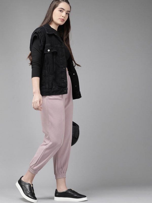 Women Rose Solid Cotton Joggers