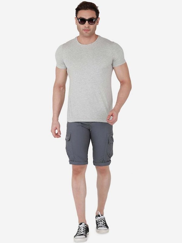 Men Grey Cargo Pure Cotton Shorts with Belt