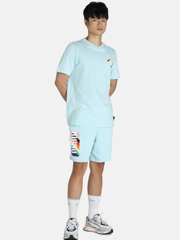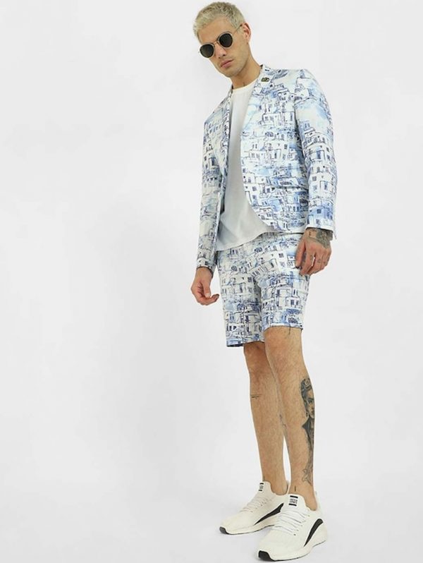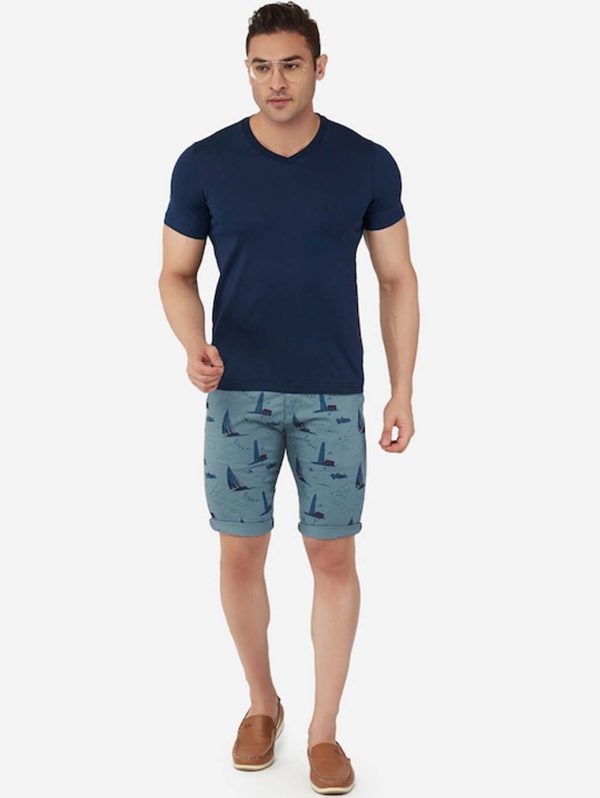 Men Blue Printed Slim Fit Regular Shorts