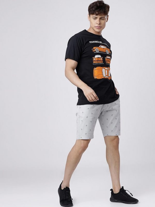 Men Grey Printed Slim Fit Regular Shorts