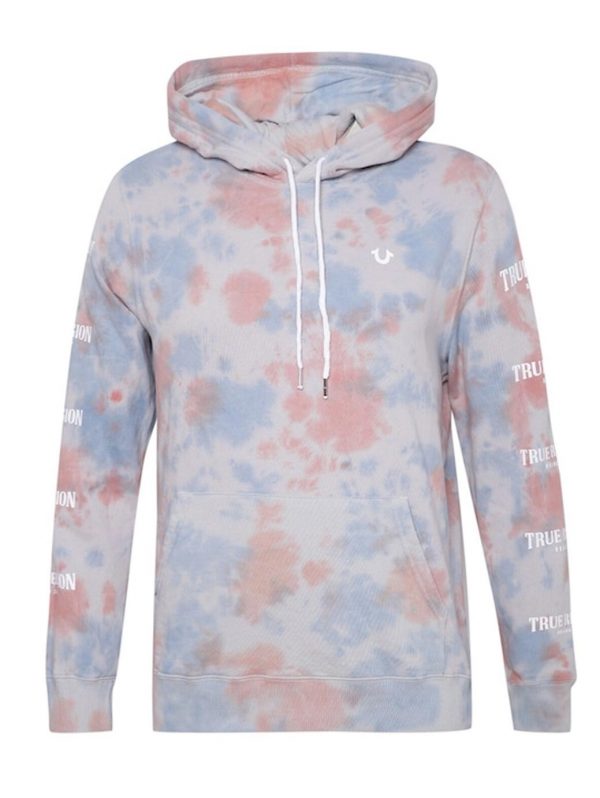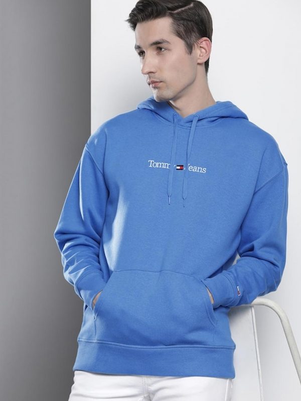 Men Blue Brand Logo Embroidered Hooded Pullover Sweatshirt