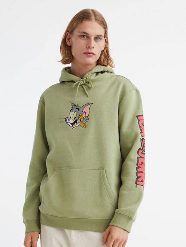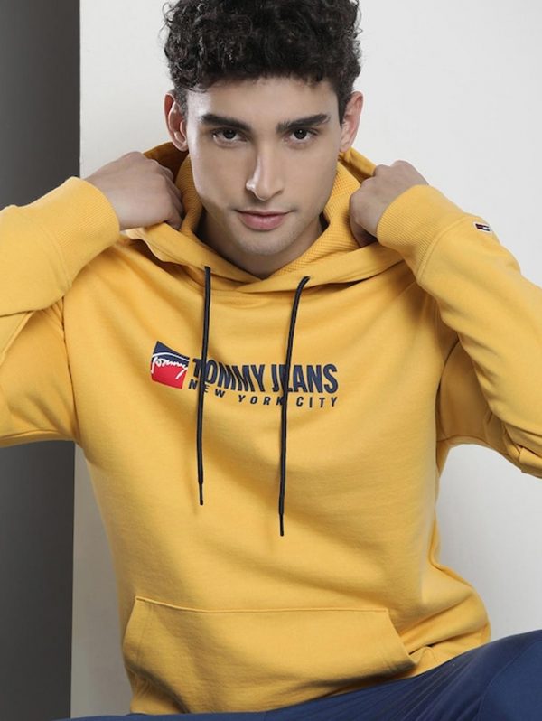 Men Yellow Applique Detailed Hooded Casual Pullover Sweatshirt
