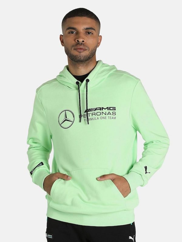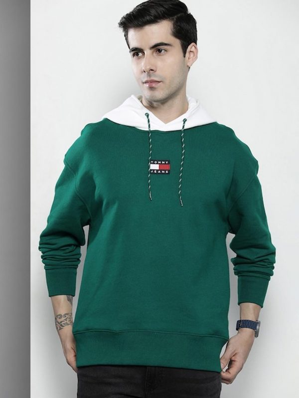 Men Green Brand Logo Applique Hooded Sweatshirt