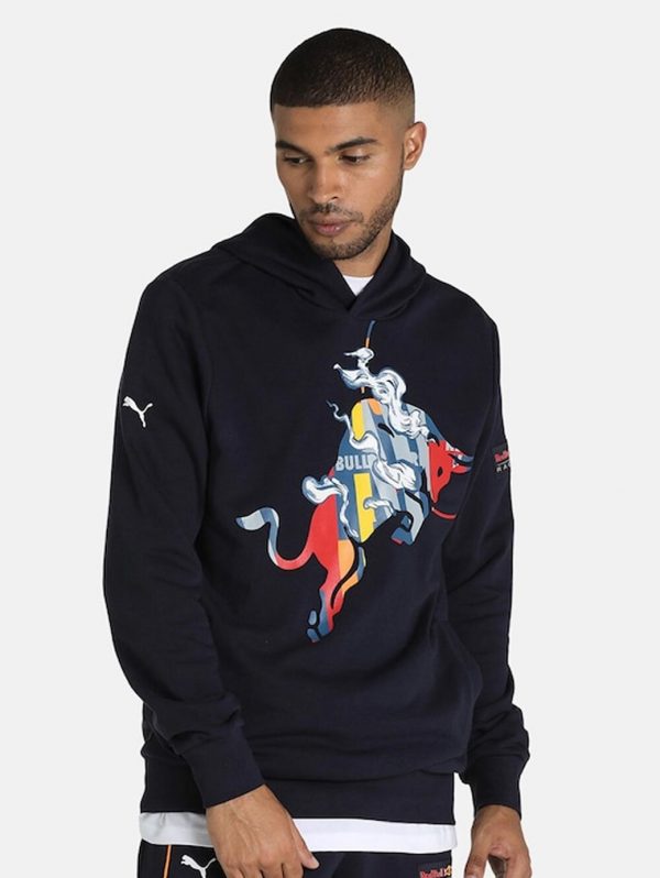 Men Blue Red Bull Racing Dynamic Bull Logo Hoodie