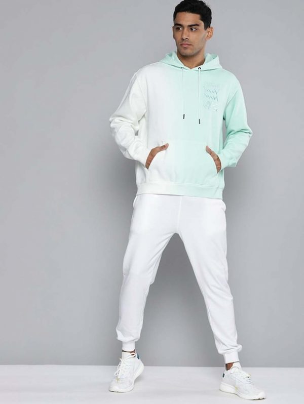 Men Sea Green Embroidered First Pick Basketball Hooded Sweatshirt