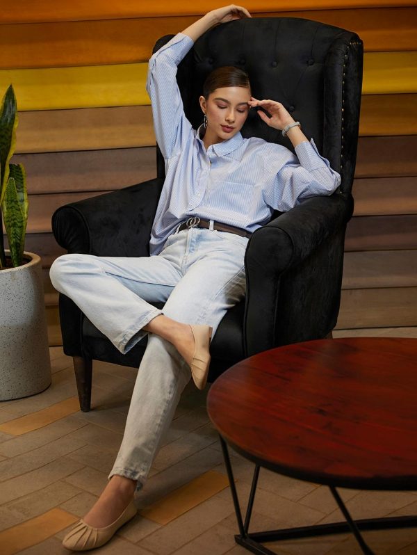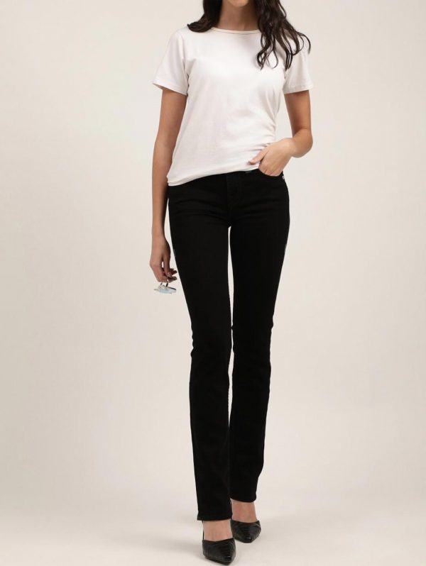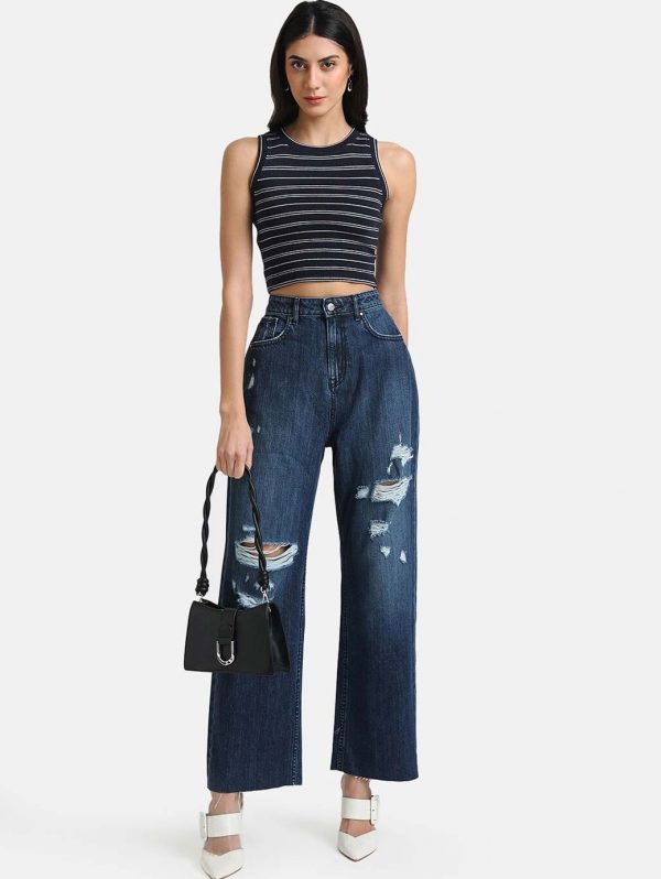 Women Blue Straight Fit High-Rise Mildly Distressed Stretchable Cotton Jeans