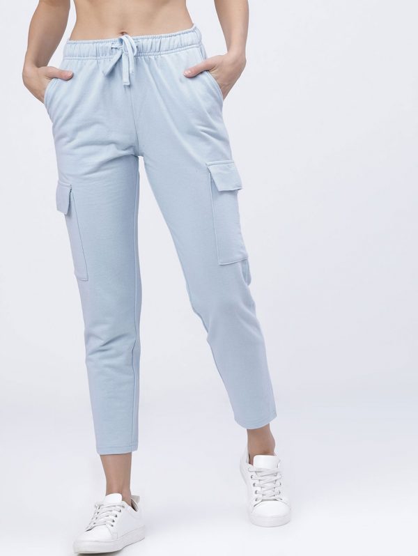 "Women Blue Solid Slim-Fit Casual Track Pants "
