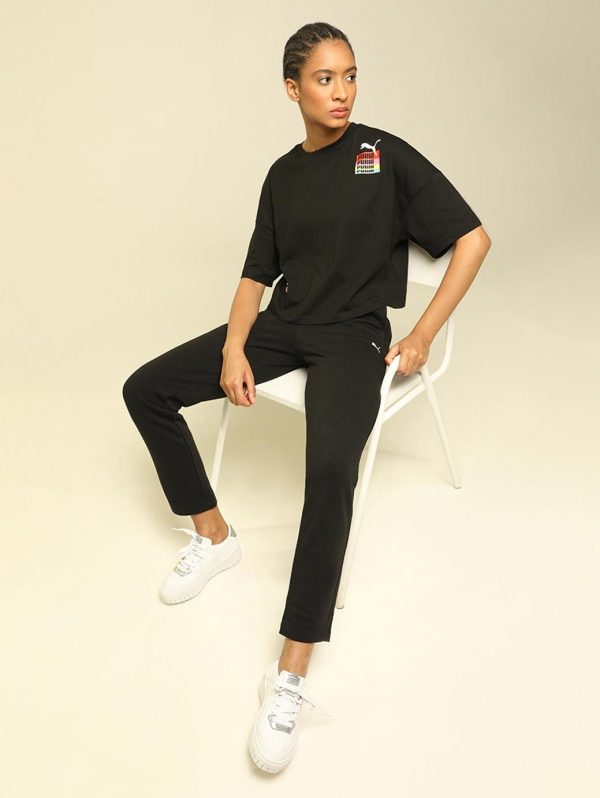Sportwear Women Black Solid Essential Fleece Regular Fit Joggers