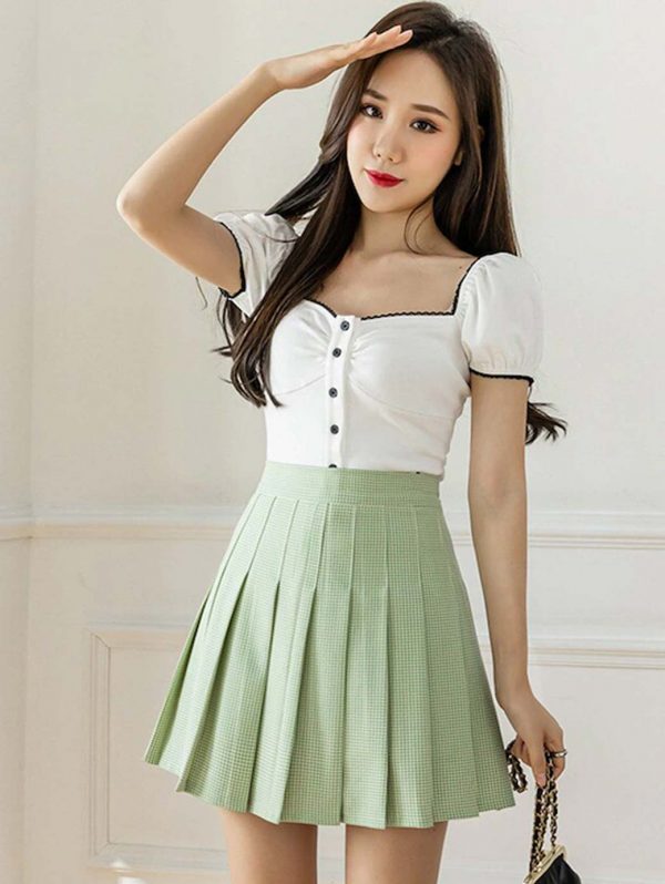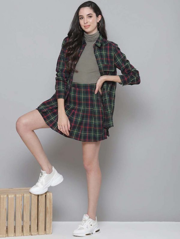 Green & Navy Blue Checked A-Line Pure Cotton Skirt