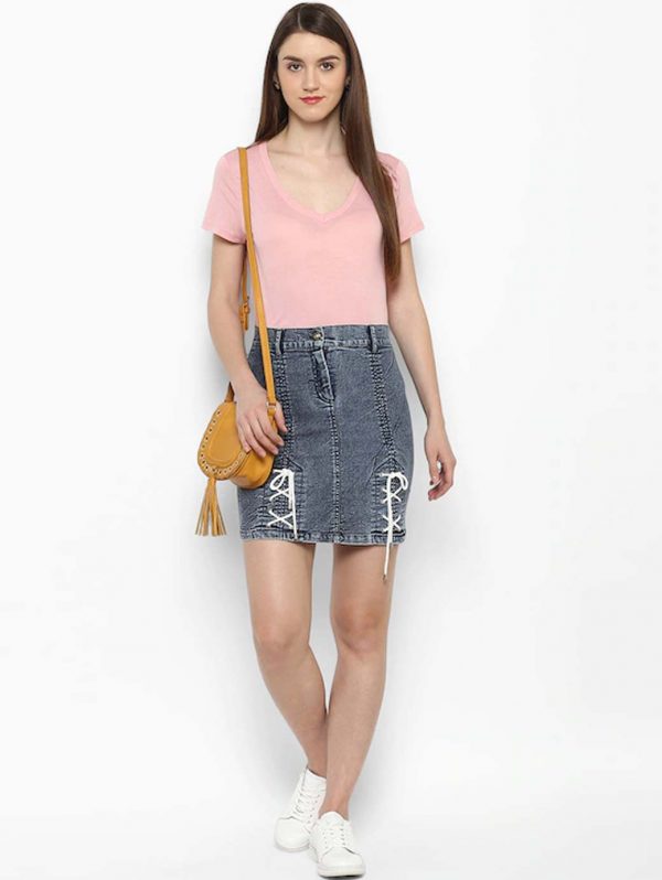 The Lifestyle Co Blue Washed Denim Straight Mini Skirt