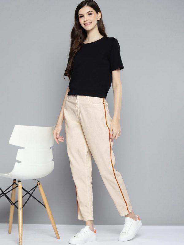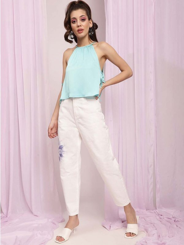 "Women Blue Pure Cotton Relaxed Fit High-Rise Clean Look Cropped Jeans "