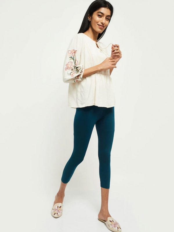 Women Teal Blue Solid Three Fourth-Length Leggings