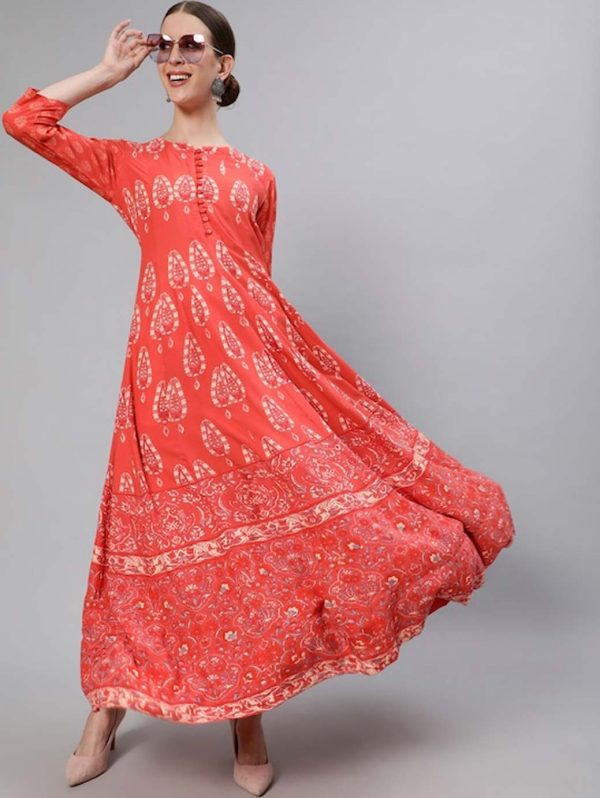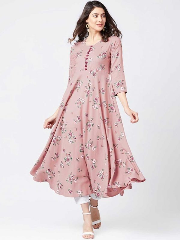 Women Pink Floral Print Anarkali Kurta