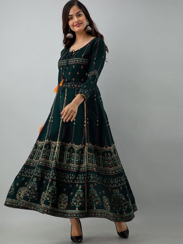 Women Green Teal Blue Floral Printed Anarkali Kurta
