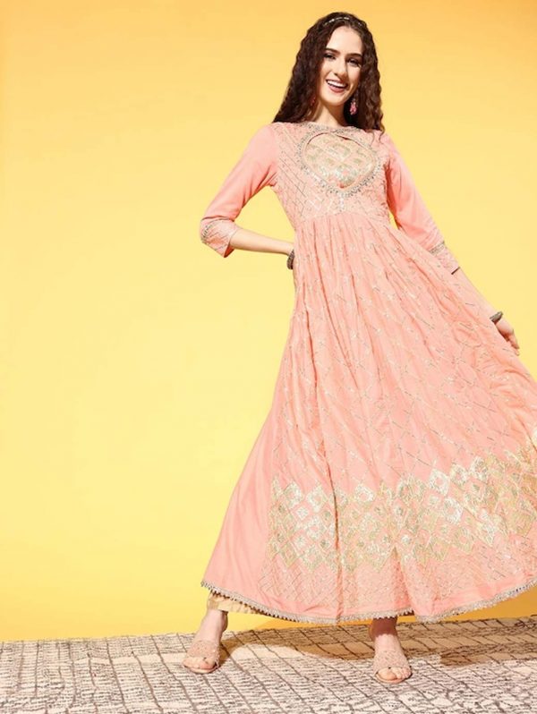 Women Beautiful Peach Cotton Bling it On Kurta