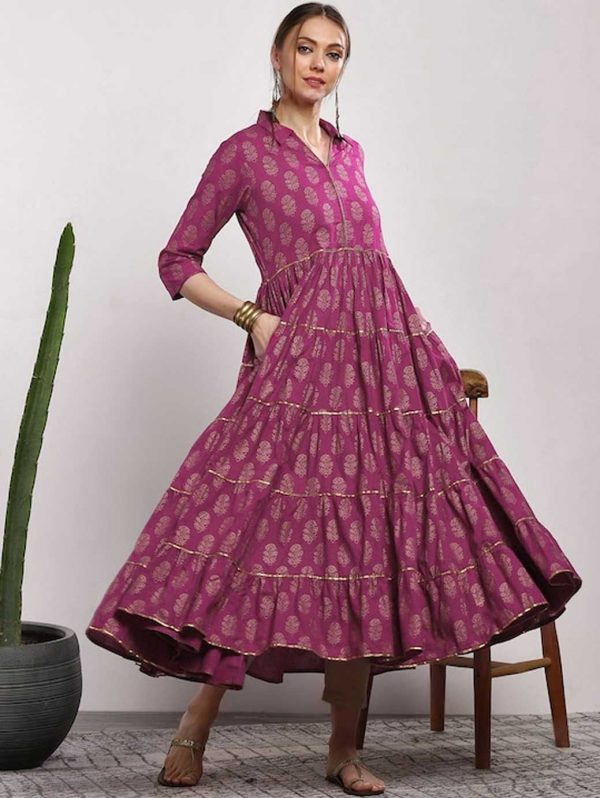 Women Pink Printed Tiered Anarkali Kurta