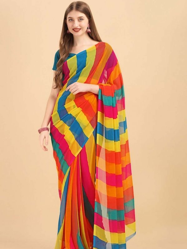 Yellow & Turquoise Blue Colourblocked Pure Chiffon Saree