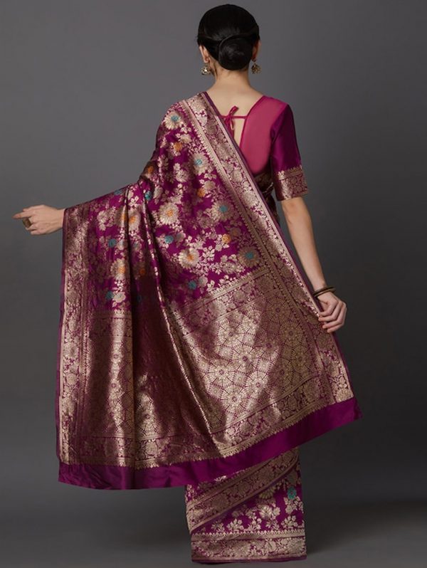 "Maroon & Gold-Toned Paisley Zari Pure Silk Saree "