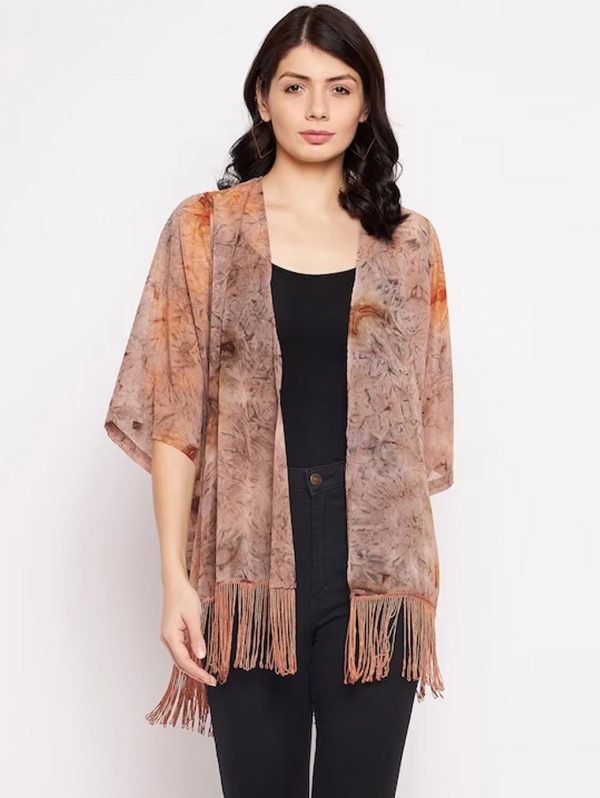 Women Brown Printed Tasselled Shrug