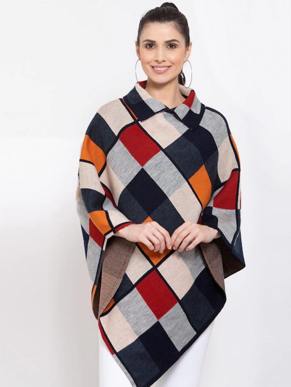 Women Beige & Grey Checked Lapel Shrug