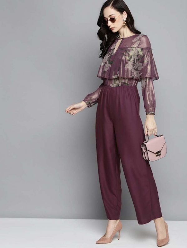 Purple & Beige Printed Basic Jumpsuit