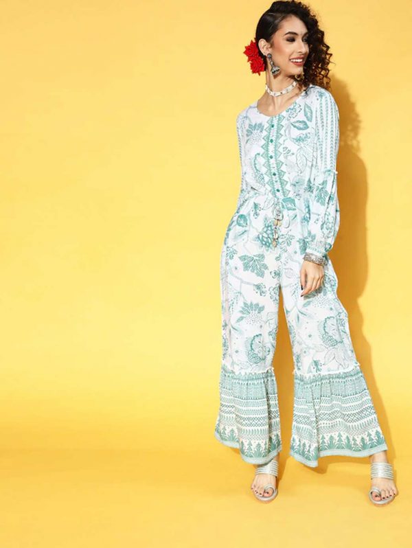 Women Gorgeous Green Printed Elevated Bottom Jumpsuit