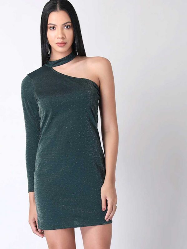 Women Green One Shoulder Bodycon Mini Dress