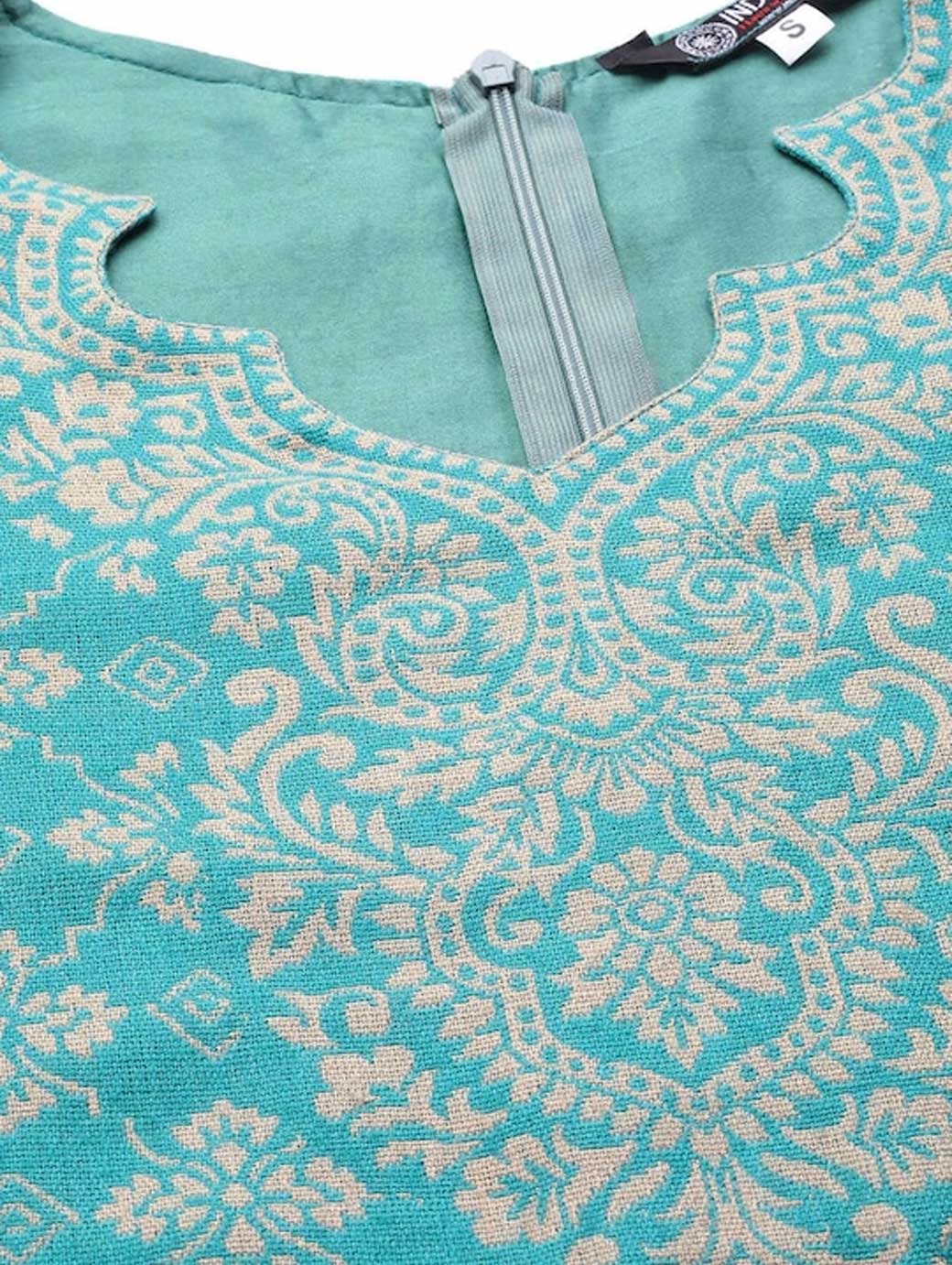 Green and beige woven design kurta fabric