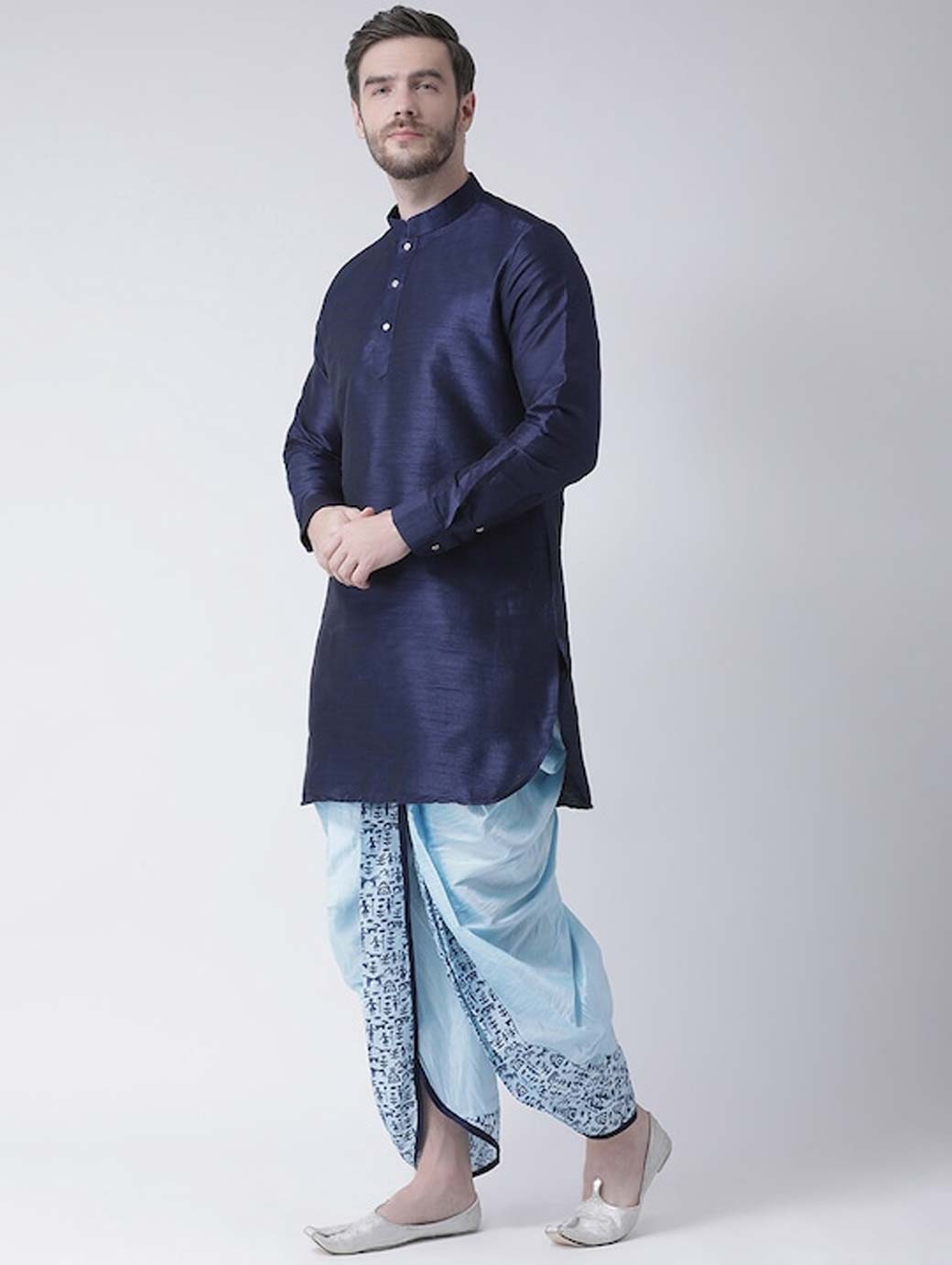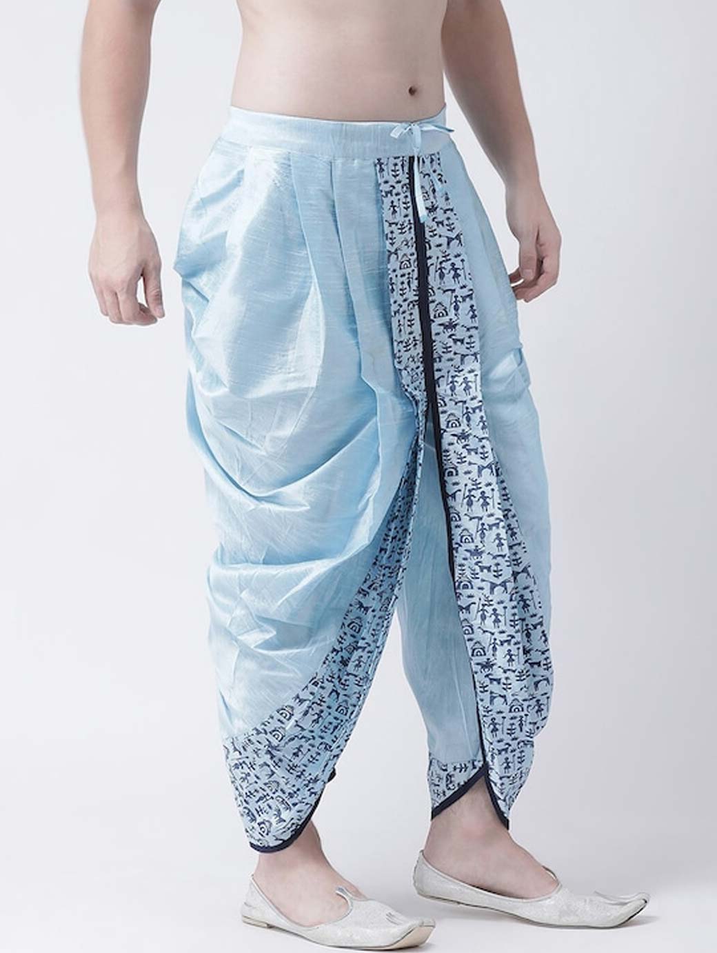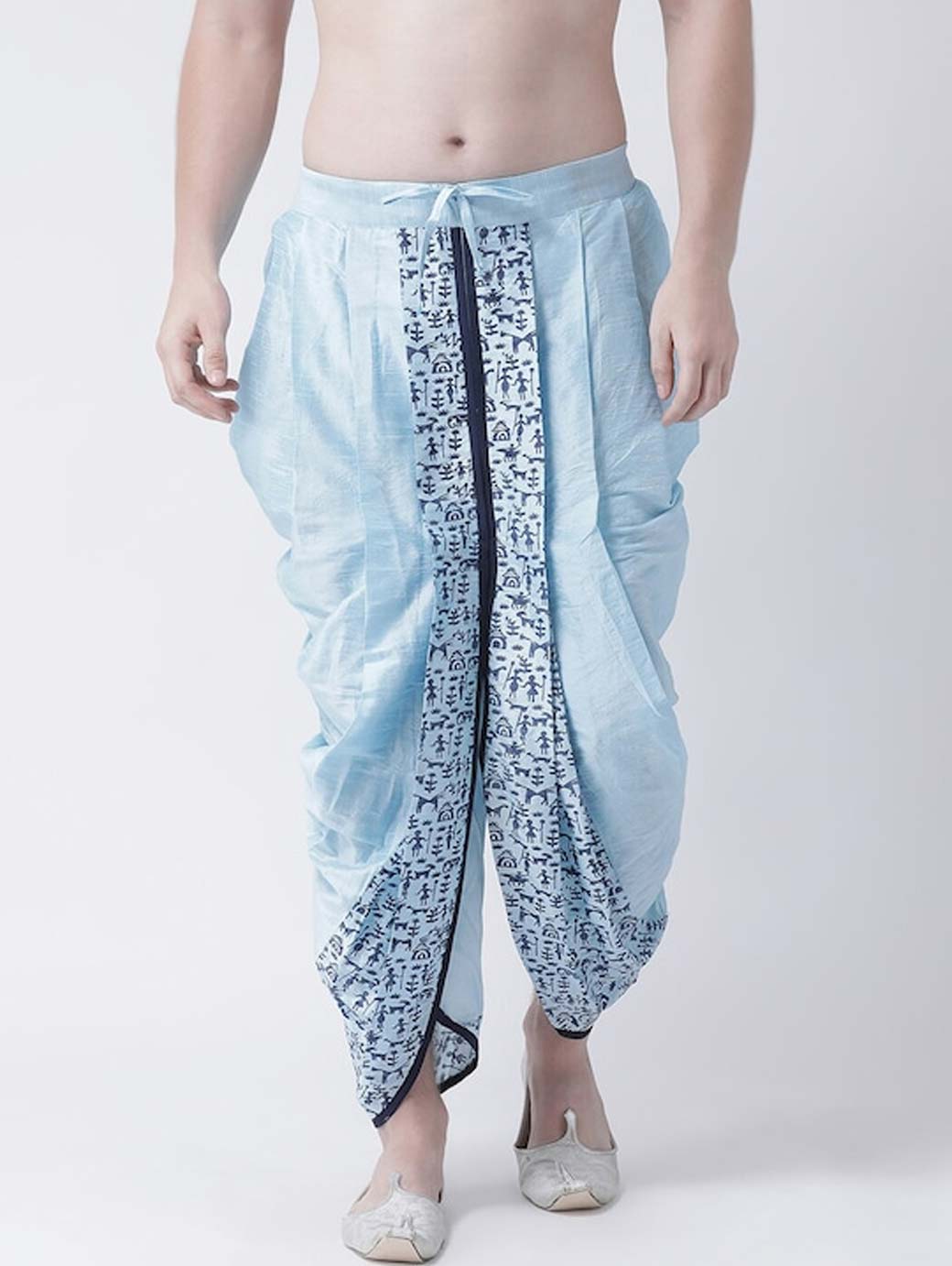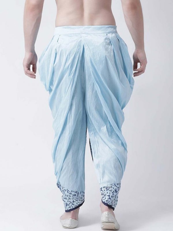 Blue printed regular-fit dhoti pants with printed detail in front and