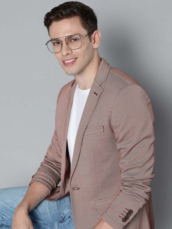 Brown solid single-breasted blazer, has notched lapel collar, long regular sleeves , button closure and 6 pockets