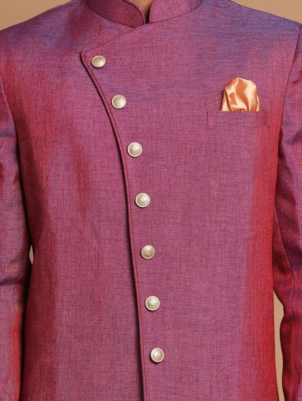 Men Magenta & Rose Gold Silk Blend Sherwani With Patiala