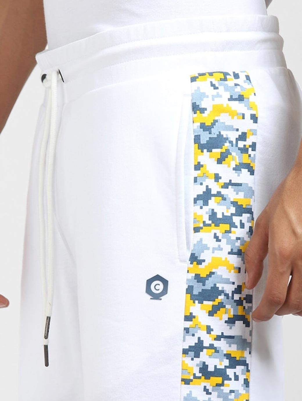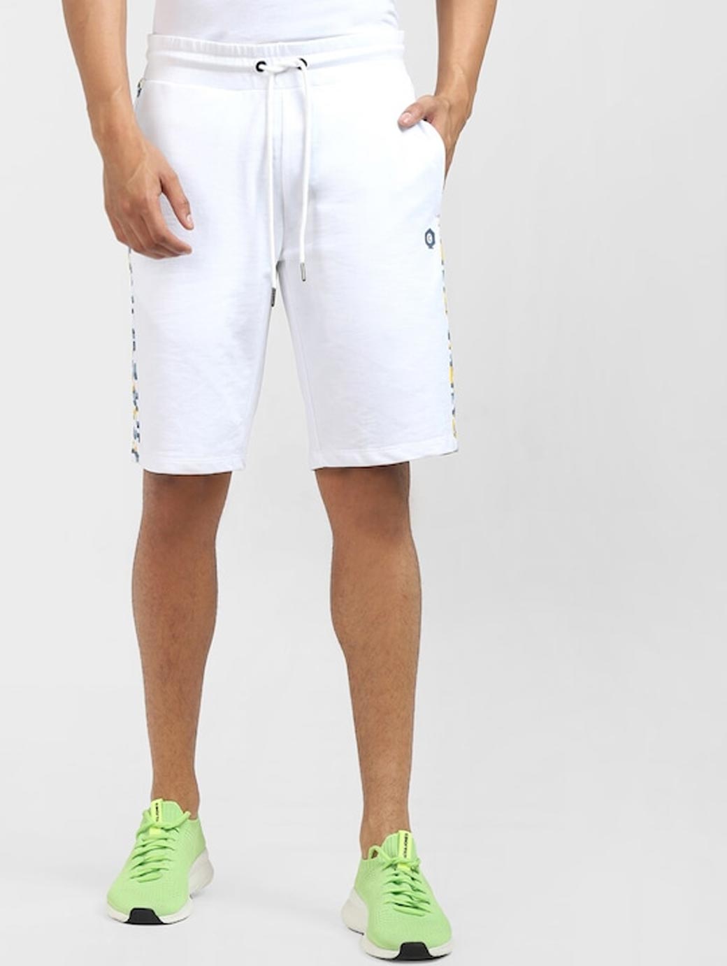 White solid mid-rise regular shorts, has 3 pockets, drawstring closure