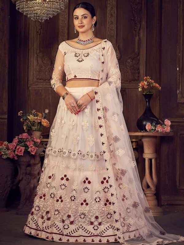 Pink and maroon embroidered lehenga choli with dupatta, thread work