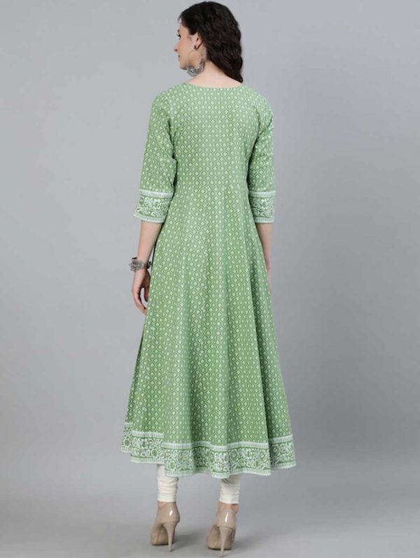 Be the first to review “Women Green and White Ethnic Motifs Printed Handloom Anarkali Kurta”
