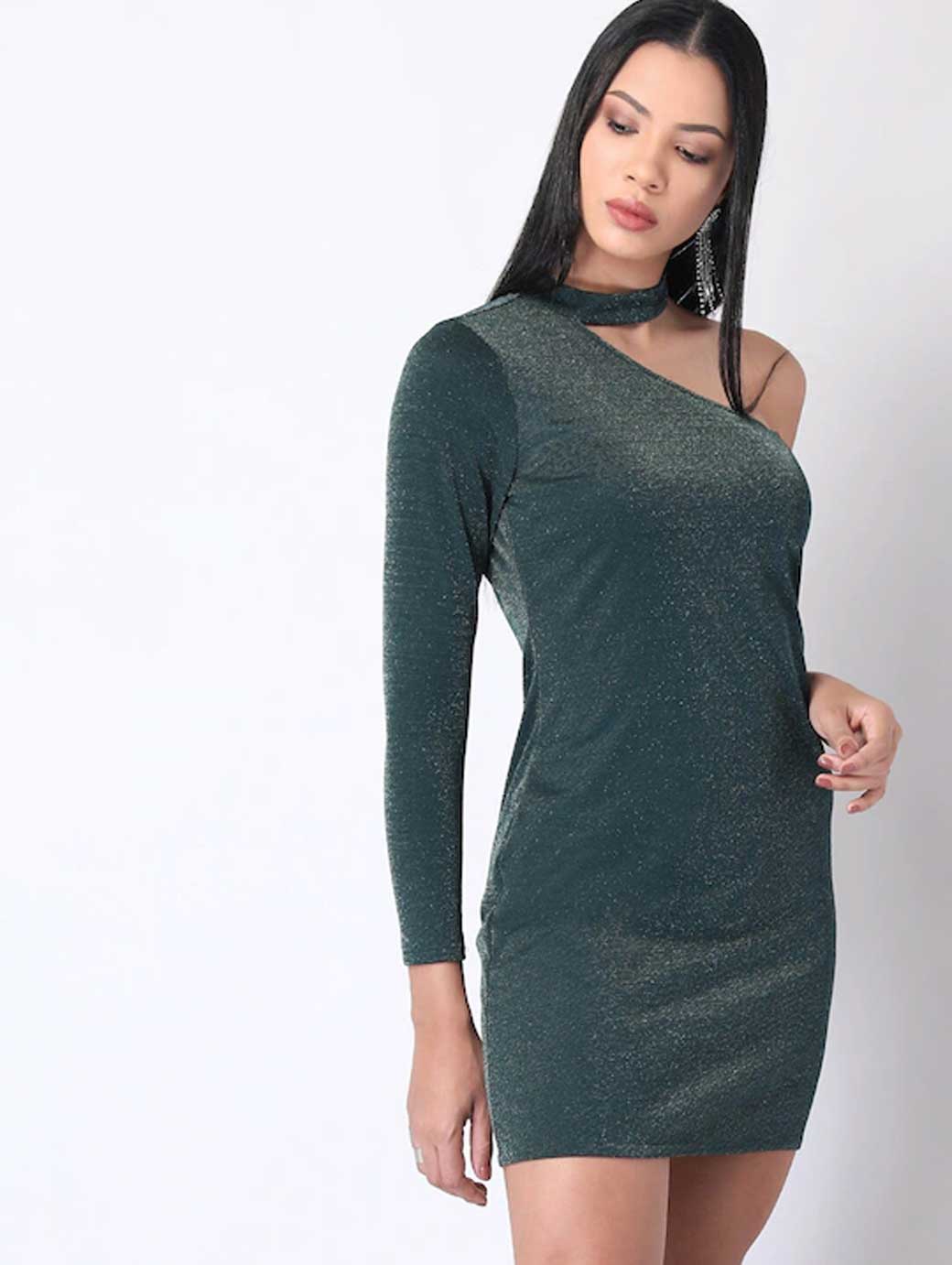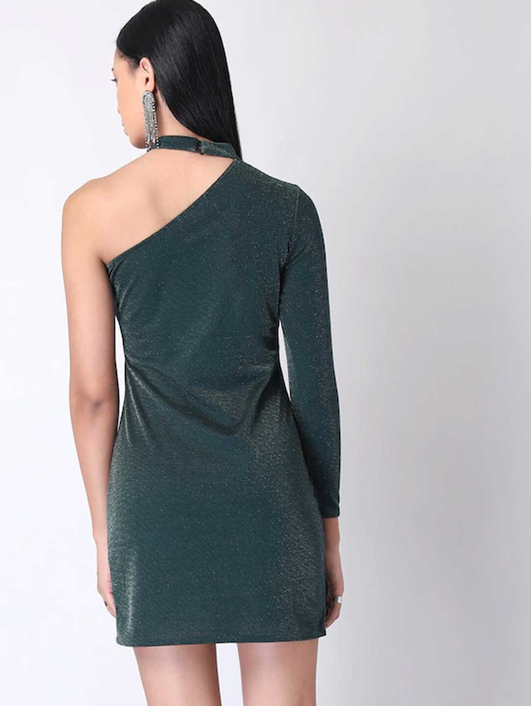 Women Green One Shoulder Bodycon Mini Dress
